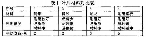 經過長時間的對比,耐磨鋼板的材料最好,同時在上面堆上一定的耐磨涂層可以有效延長葉片的使用壽命,也可以承受住長時間的無規(guī)律沖擊。同時還可以減少軸與孔的接觸部位的大小,不僅能解決更換軸的問題,還能保證承受高強度的彎折應力。